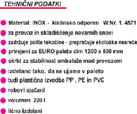 ZA KISLINE in druge jedke medije IZDELUJEMO KONTEJNERJE IZ INOXA w.nr 1.4571 z vdelano polipropilensko posodo varjeno po leisterjevi metodi debeljine sten 6mm |