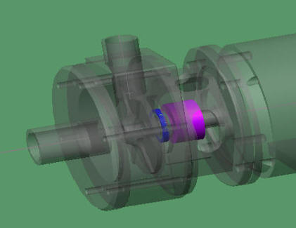 | 3D-CAD SESTAVNICA na sestavnici je prikazana črpalka ki je sestavljena iz 4 sklopov. Kompletno konstrukcijo držijo kar skozni vijaki direktno v prirobnico s tem se znebimo mnogo dodatnih elementov in vzdrževanje je tako sila poenostavljeno. |