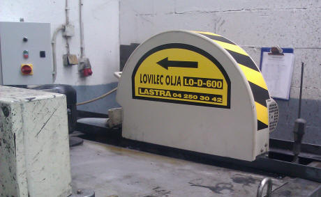 Na počasi vrteč disk ob pravi hitrosti se olje z emulzijo  diska oprime. Ko se  olje po obodu dviguje voda steče nazaj v posodo na disku pa se olje oprijemlje površine in se  vodi vse do ločevalnih teflonskih nožev. Noži olje posnamejo in ga zberejo.  Posneto olje se samodejno zbira v zbiralniku ,in  samodejno odteka v  večjo posodo za odpadna olja/emulzije. Ta se ponavadi postavi ob rob kadi in se vodi preko flexibilne cevke direktno v zbirnik. Okvir lovilca je izdelan tako, da se ga pritrdi na rob posode, na rob kadi , cisterne ali kinete ponavadi od 40 –90 mm od roba.