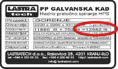 V programu plastike izdelujemo GALVANSKE KADI, plastične cisterne, razne posode, druge plastične izdelke glede na namen in uporabo.Dimenzije izdelkov so praktično neomejene. Varjenje poteka po metodi vročega zraka z dodajanjem, z ekstrudiranjem, polidifuzijsko po Leisterjevi tehnologiji.Večje posode so statično ojačane s kovinskimi profili, kateri so prekriti s plastičnimi U-profili za zagotavljanje odpornosti na agresivne medije. | | [ Nazaj ] [ Izdelki ] [ Lokacija ] [ Novosti ] [ Uporabne info. ] [ E-Mail ] LASTRATECH d.o.o. , Rakovica 28, 4201 Zg.Besnica-KRANJ tel: 04 250 66 30 fax: 04 250 66 33, gsm: 041 642 631 |