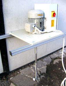 Izvedba je konstruirana tako, da je za elektromotorjem podaljšan statični jeklen okvir v katerem je sedež za kroglični ležaj in semeringe.