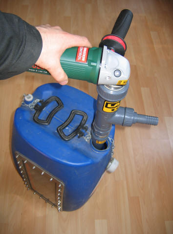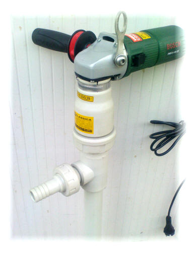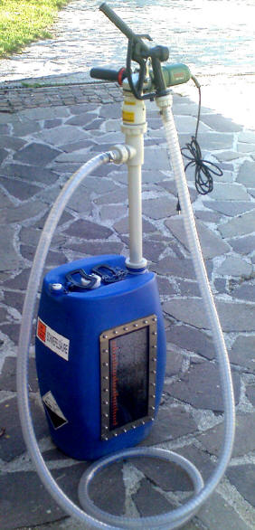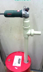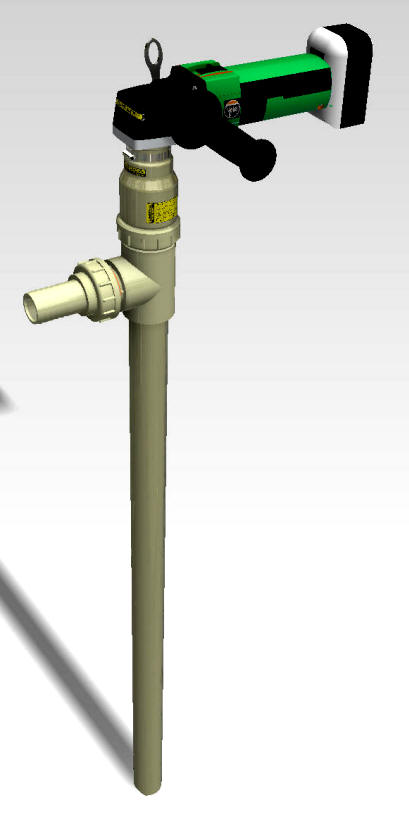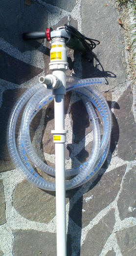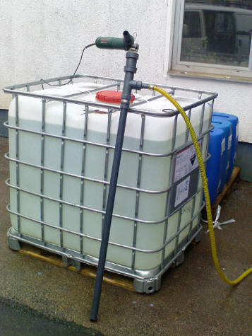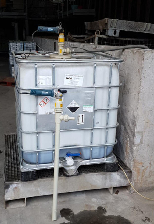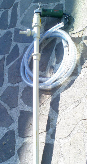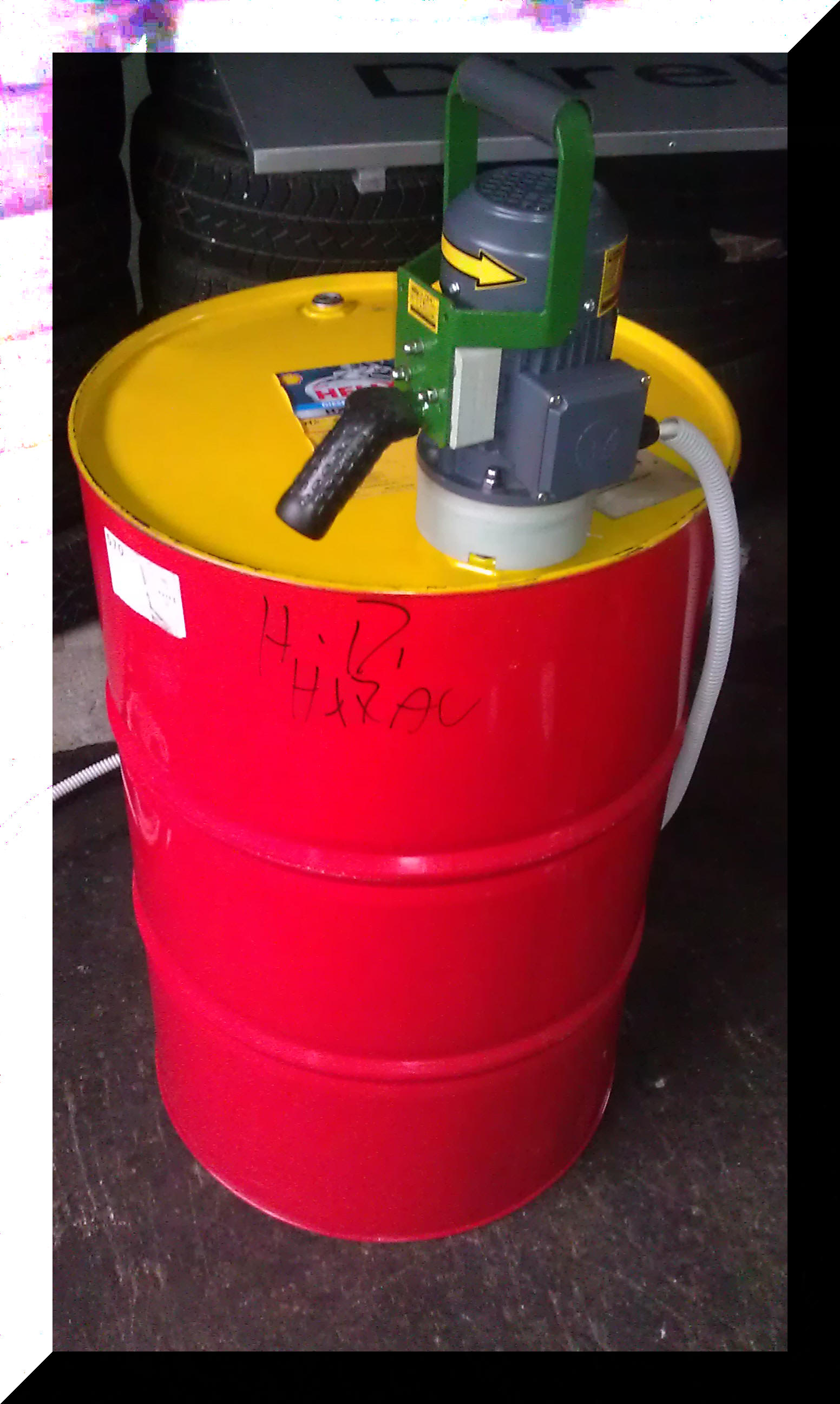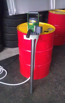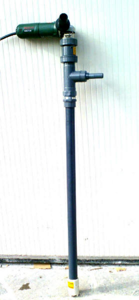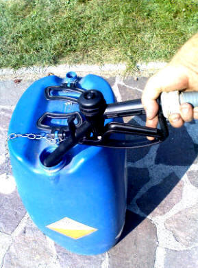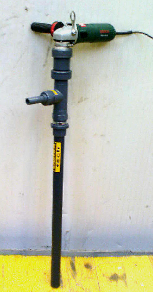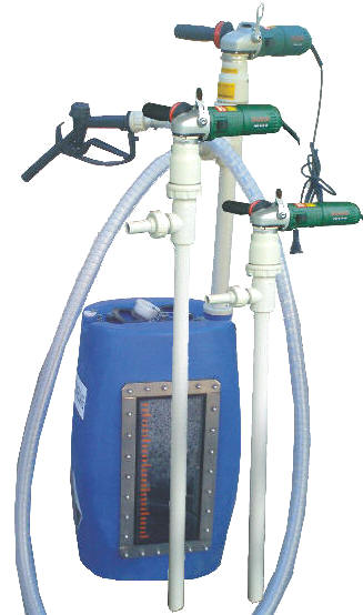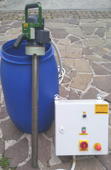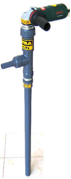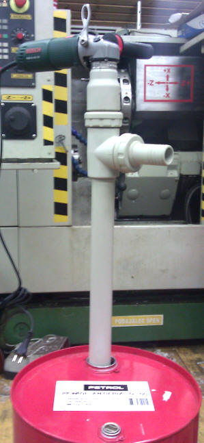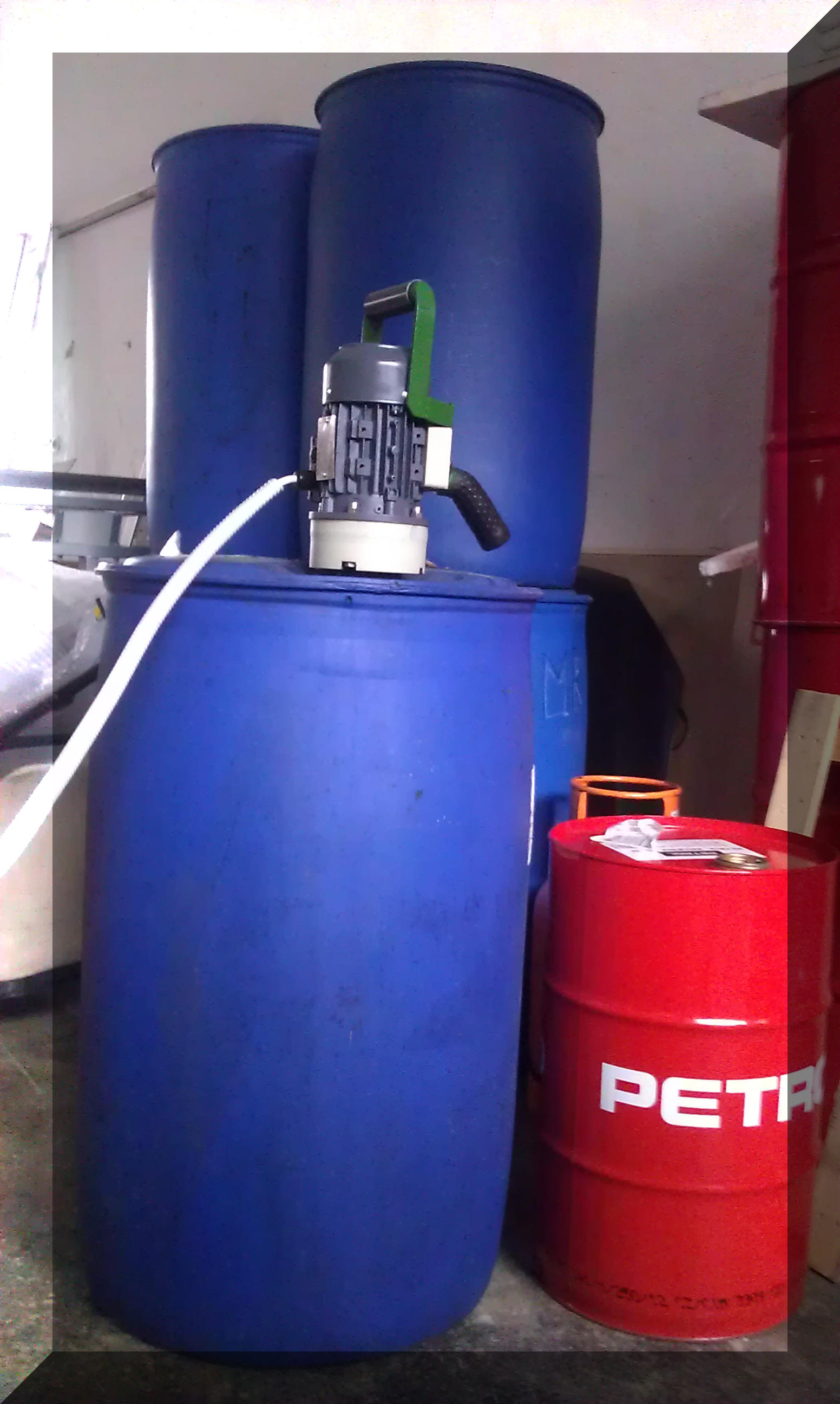 kontejner ali drugo industrijsko standardno embalažo. Ob strani ima vgrajeno odlagalno ušesce da jo enostavno in varno odlagamo. Priključek na črpalki je izveden s holandcem in smerekico. Pogon je BOSCH ki je zelo vzdržljiv in ima vgrajen regulator hitrosti. Črpalki lahko dobavimo tudi dozirno plastično pištoloda je prečrpavanje funkcijsko enako kot bi pretakalii goriva na bencinski črpalki. Standardne dolžine cevi 700,1000 in 1200 mm.