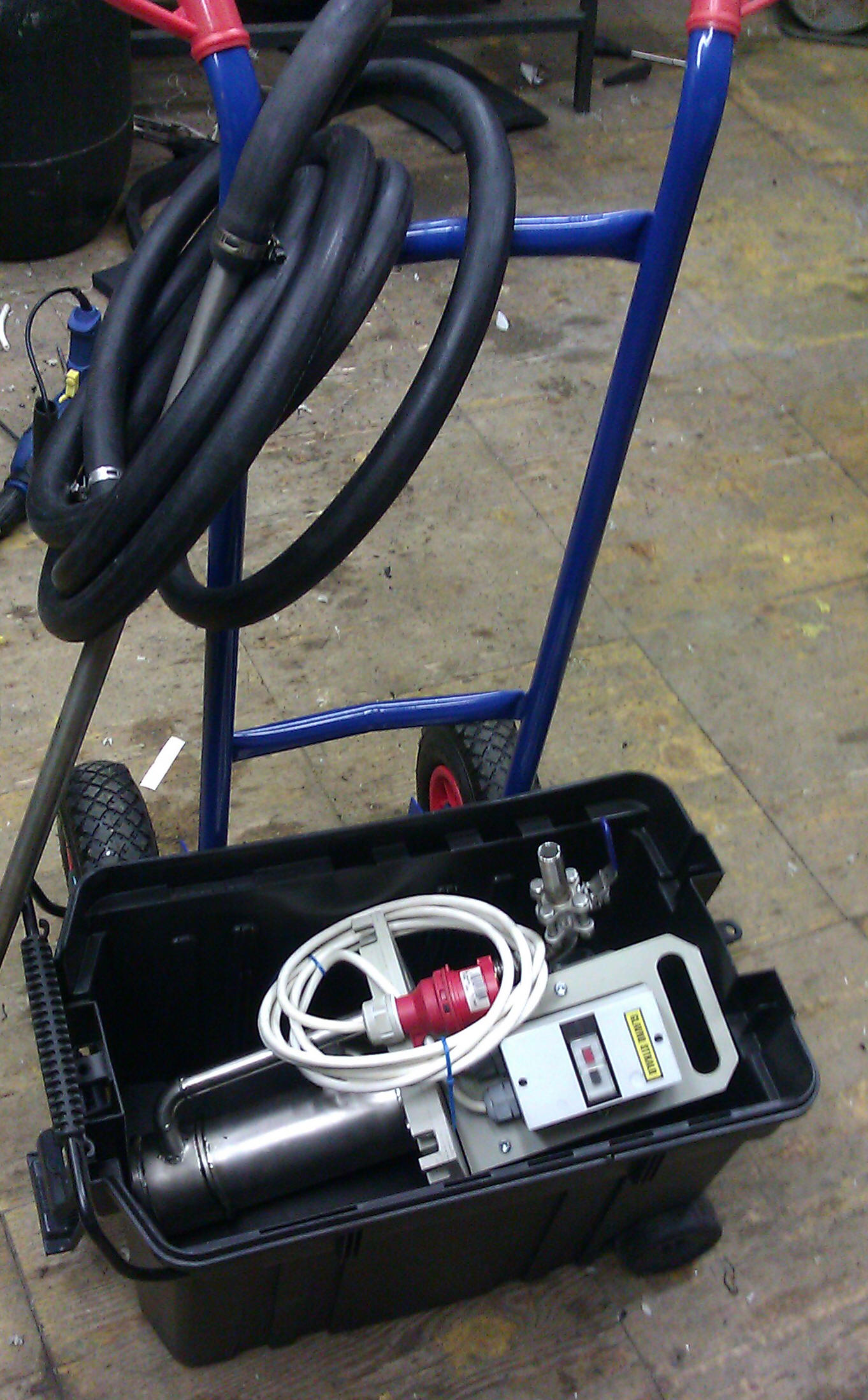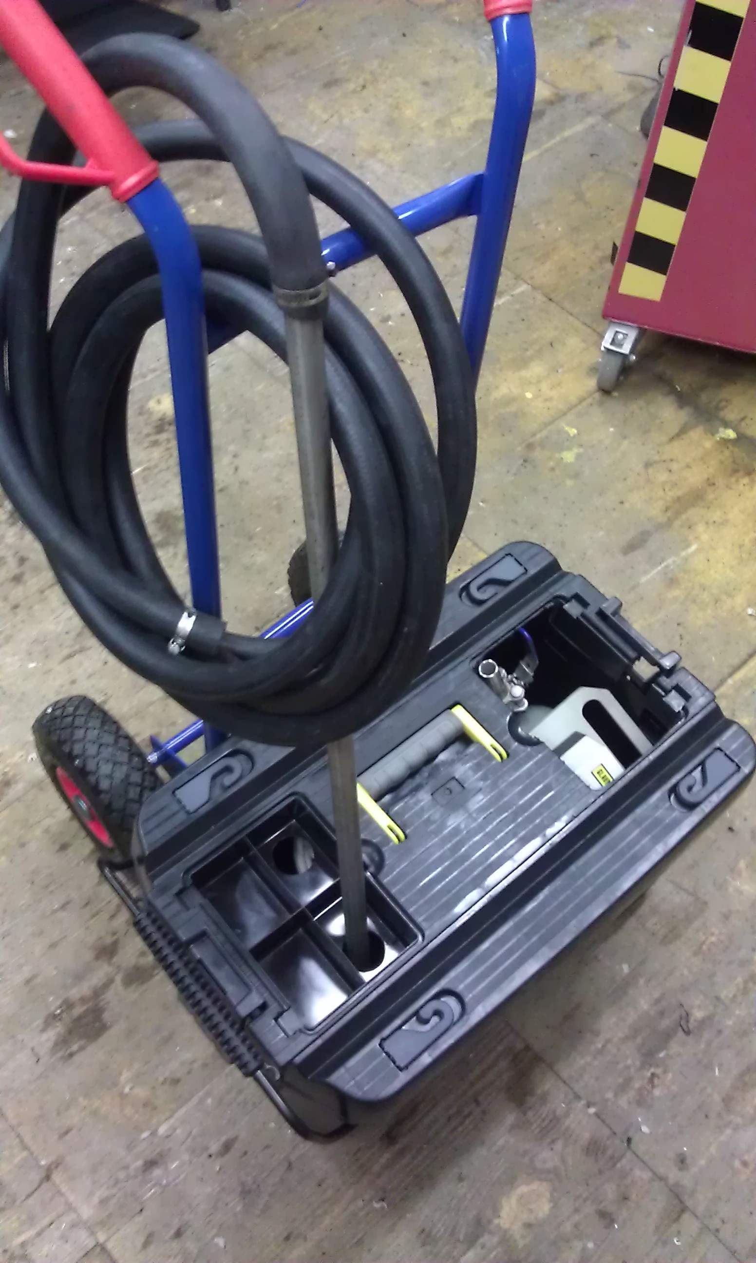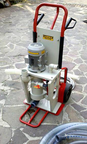 črpalka je montirana na prenosnem prevoznem vozičku |