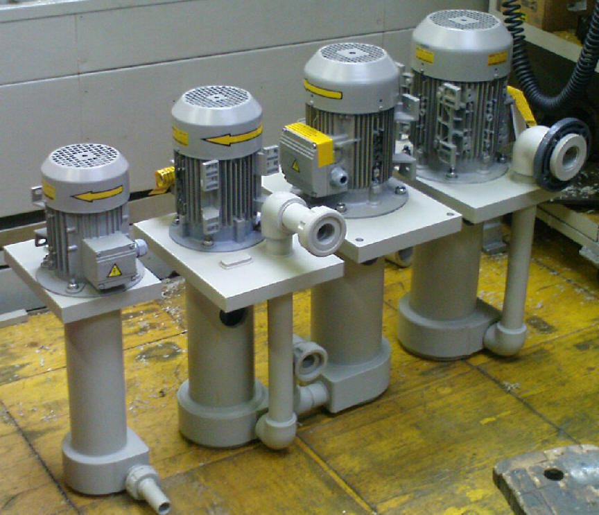 | Centrifugalne brezležajne črpalke so namenjene za pretakanje agresivnih, nečistih, čistih in viskoznih tekočin v različnih vejah industrije. Prečrpavamo lahko tudi medije v katerih so abrazivne snovi ( žlindra, steklo,ostružki ..) Črpalka nima drsnih ležajev, tako da ne pride do poškodb tudi kadar deluje v prazno oz.da medij ni prisoten.Črpalka teče mirno in tiho.Črpalka ni samosesalna, ob primerni montaži ali ob vgradnji nepovratnega ventila pa jo ob zagonu ni potrebno zalivati. Zaradi nizkih obodnih hitrosti je omogočeno prečrpavanje tekočin viskoznosti nivoja olj SAE 40, oljnih emulzij barv .. . Črpalke so izdelane iz raličnih materialov glede na namen in sicer iz jeklene pločevine ,nerjaveče INOX pločevine W.Nr. 1.4571,termoplastov - polipropilena PP, polivinilklorida PVC,polietilena PEHD | |