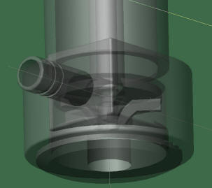 CAD 3D prikaz črpanega dela ki nima tesnil in ležajev |