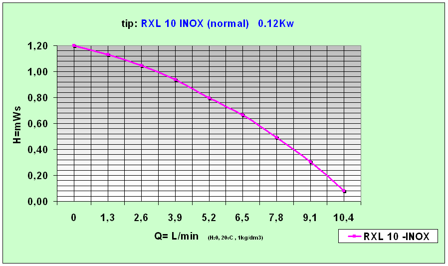 | TEHNIČNE INFORMACIJE : RXL10 INOX | | črpalke: | RXL 10 PP norm | | Moč motorja/: | 120 W 3X400V