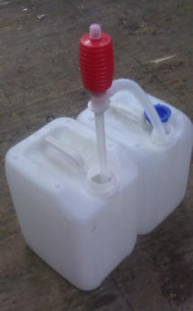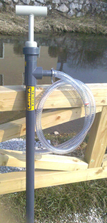 Prečrpavanje z ročno črpalko in natega če je nivo cevi na