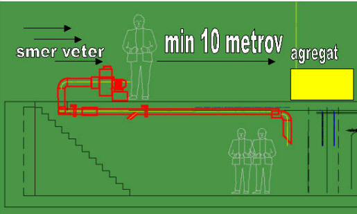 Puhalo z elektromotorjem se nahaja zunaj prostora . Lahko se