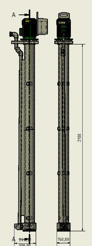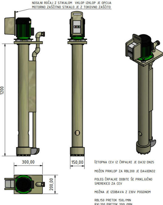 modificiran model RBL150 L1000 ZA PRETOK 2,5m3/h ( 43 L/min) z ventilom