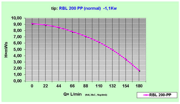 vejah industrije. Črpalkaje popolnoma izdelana iz polipropilena iz gred