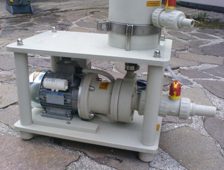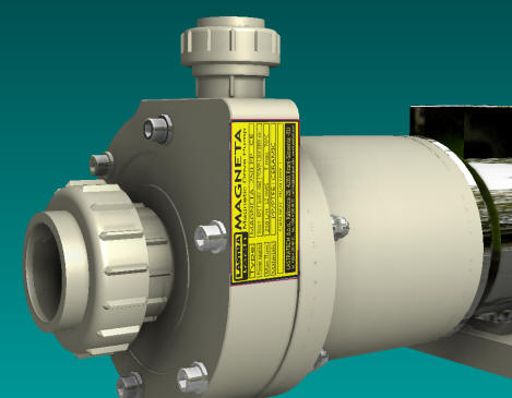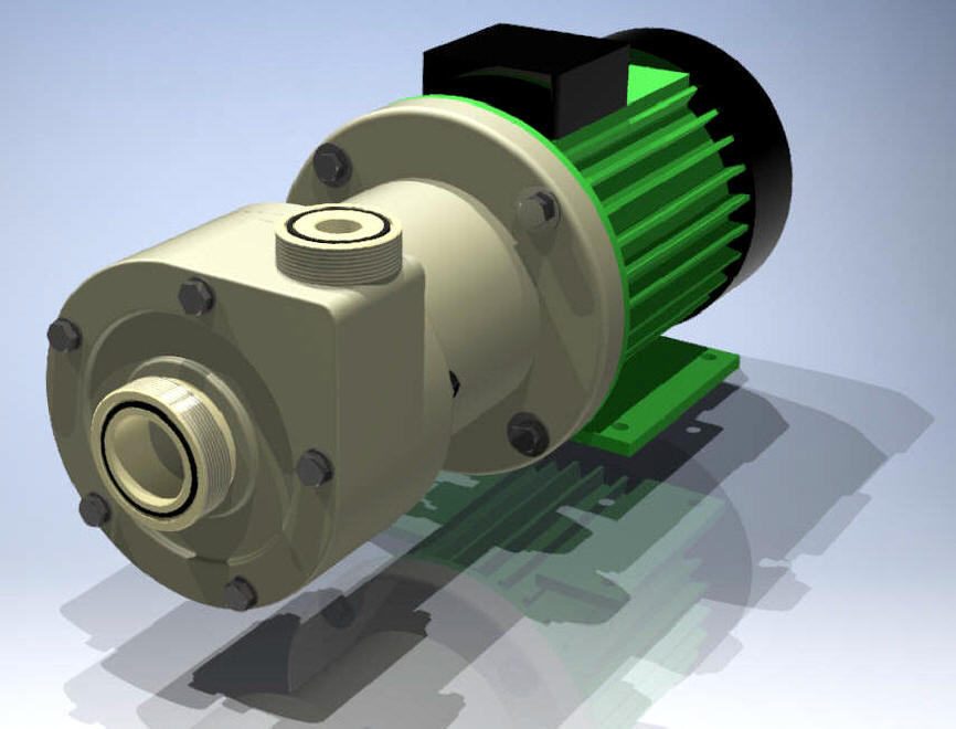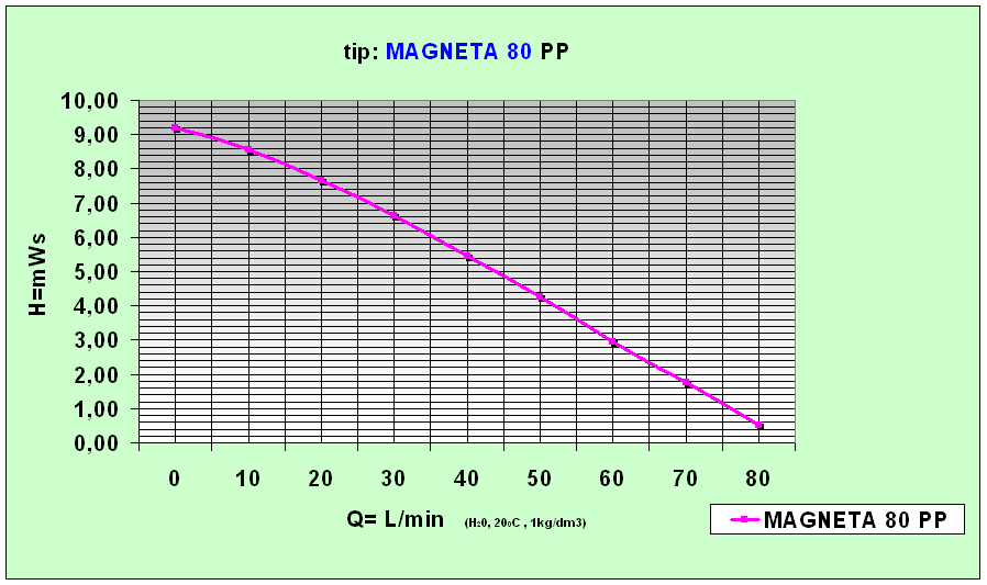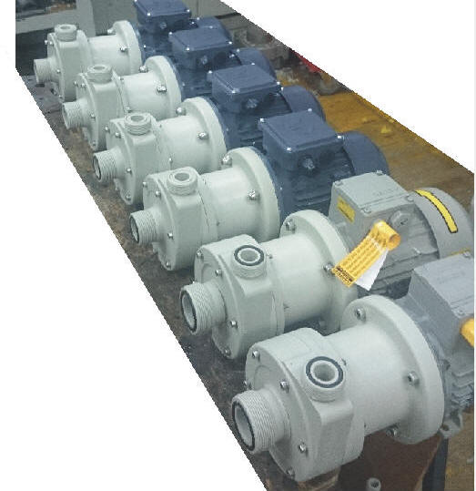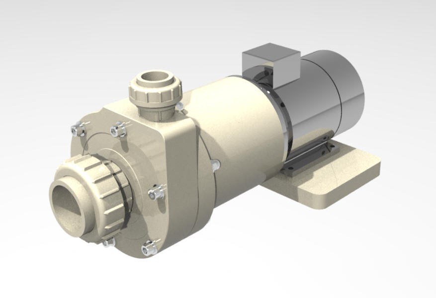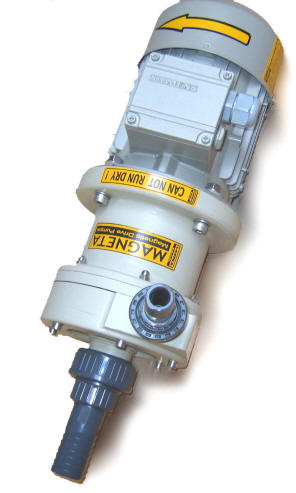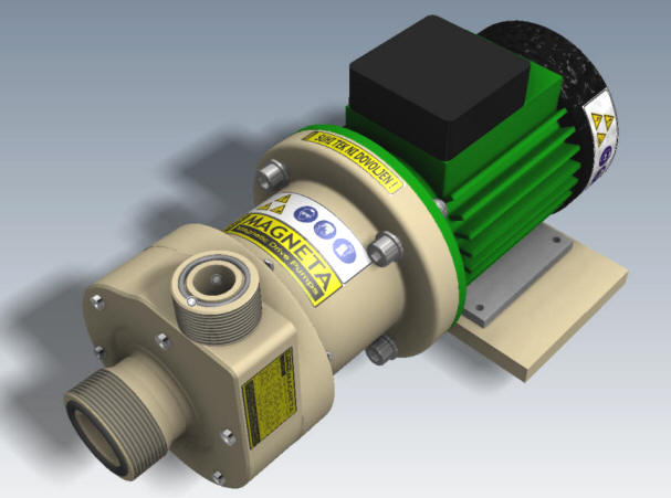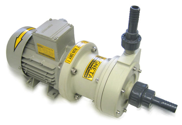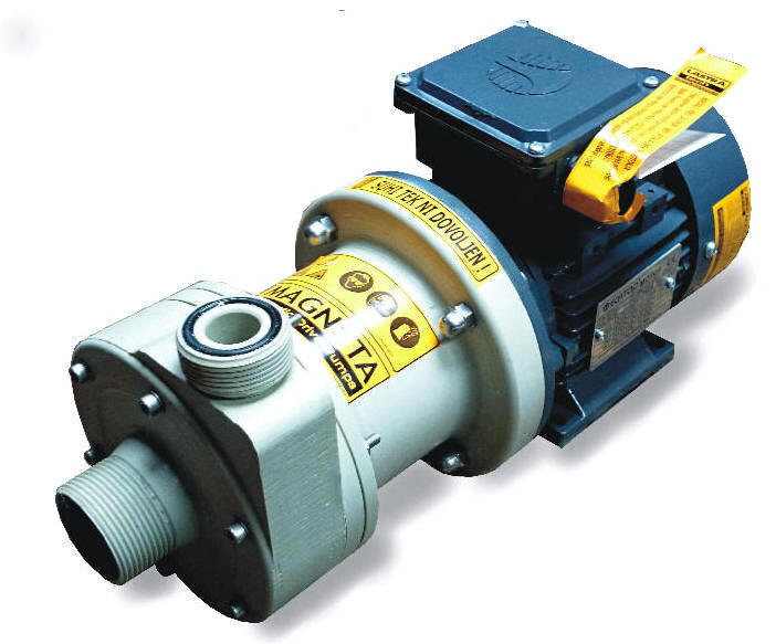 more priti do izlitja tekočine. Osnovna oblika je kot pri horizontalnih klasičnih črpalkah s tem da je nosilni okvir izdelan iz polipropilena in je korozijsko odporen.Konstukcija omogoča s sesalno posodo do 4m samosesalne višine.Suhi tek ni dovoljen . Črpalka omogoča dolgo življensko obratovanje. Zaradi inovativne konstrukcije je magnetni del hermetično zaprt. Tesnil na pogonski gredi ni, zato onemogoča kakršnokoli izcejanje ali solzenje medija v okolico