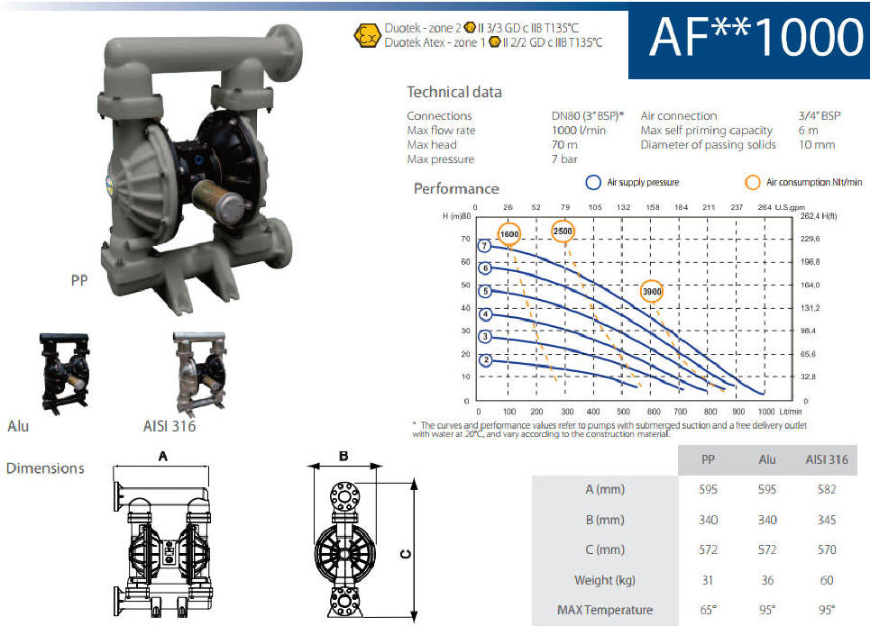 aluminij izvedba AF160 za prečrpavati olja in emulzije pretok do 160l/min