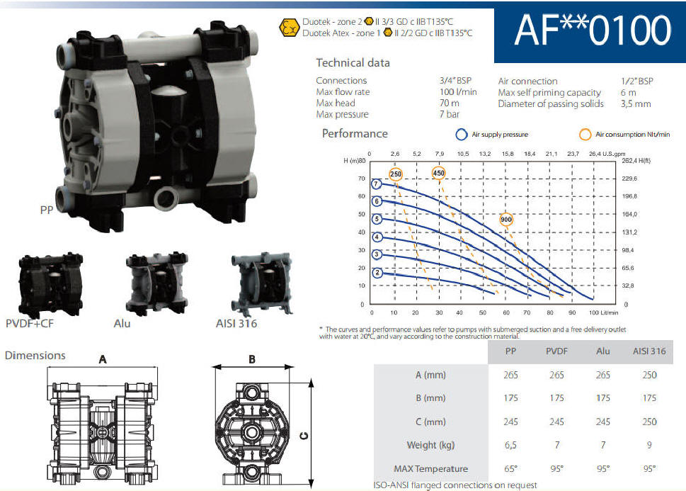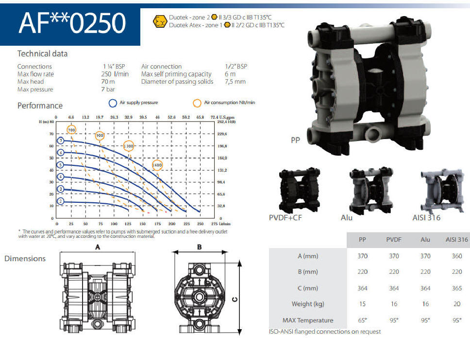 membranske pnevmatska črpalka AF170PP-PTFE(