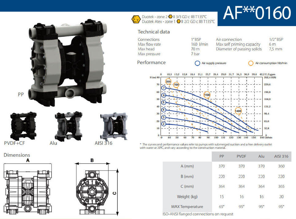 membranske pnevmatska črpalka AF160 ALUMINIUM-NBR (olja-emulzije)