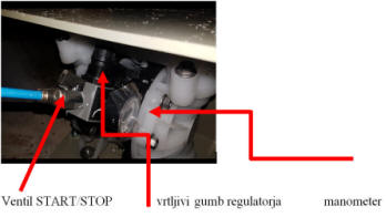 -na manipulativnim vozičku je stikalo START STOP za zagon,te regulator