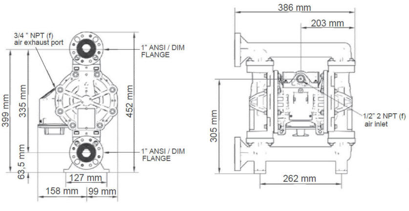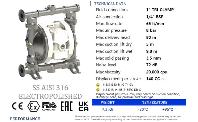 Črpalka pnevmatska membranska FDA za prečrpavanje prehrambenih