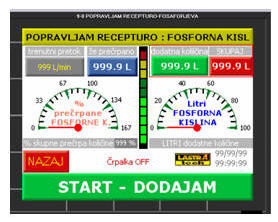 željeno količino prečrpane kisline in po vpisu parametra in potrdilu z
