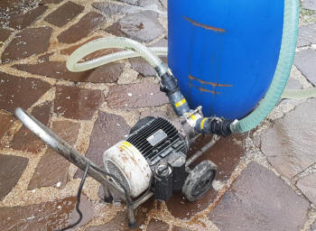 Črpalka je na vozičku in enostavno vodljiva.