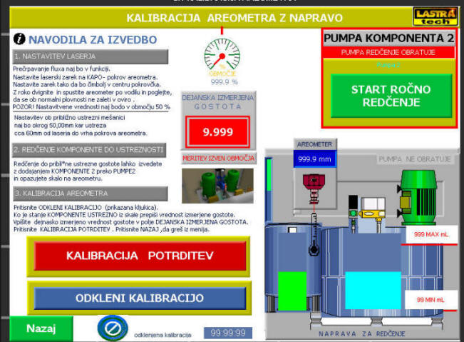 NASTAVITVE VKLOPA KOMPONENTE 2 ROČNO IN AVTOMATSKO ZA POTREBO REDČENJA