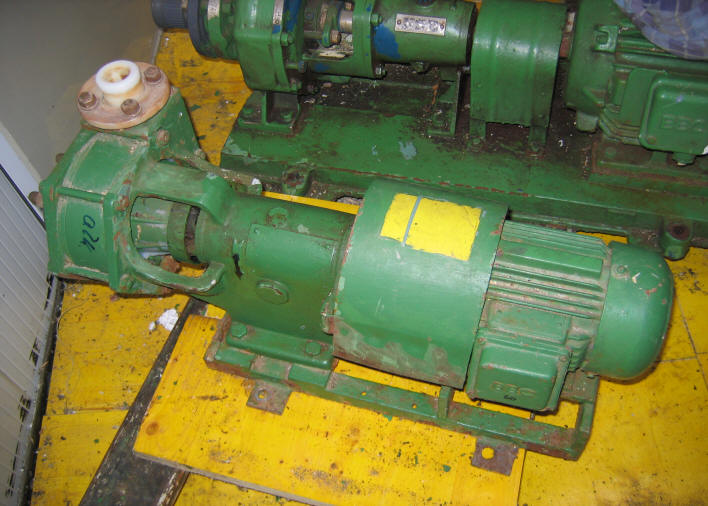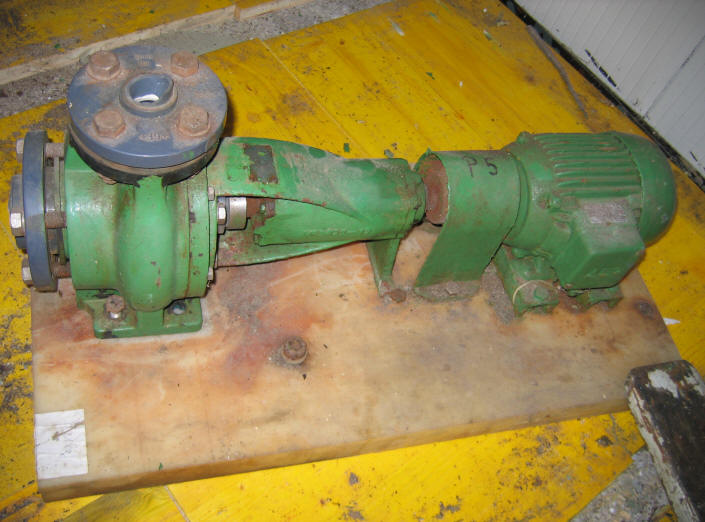 | IME RABLJENE OPREME št 6 | RABLJENE CENTRIFUGALNE ČRPALKE KSB | FOTO | | | |  | | PROIZVAJALEC | KSB A.G. | | LETO | 1989 | | OPIS OPREME | CENTRIFUGALNA ČRPALKA KSB ? pretoka ? CCA 100 L/MINTLAK? CCA 1BAR motor: AEG 3X400V .55kW z sklopko na plošči Črpalka je v dobrem stanju ohišje je jekleno gumirano na jeklenem podestu Črpalka je delovala v nemčiji nekaj let z namenom prekrpavanja kemične raztopine | | POREKLO | NEMČIJA | | STANJE OPREME | *** | | CENA: | 150 EUR |